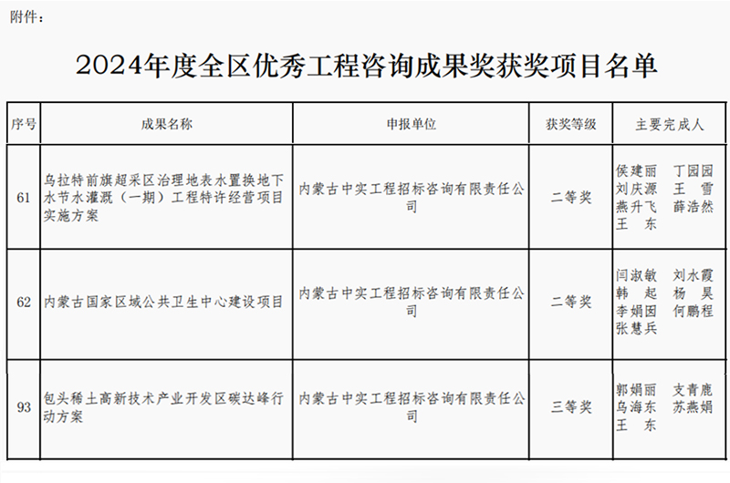 2025-04-1610230 次2025年4月16日,内蒙古工程咨询协会公布了2024年度优秀咨询成果奖获奖单位名单,我司取得两个二等奖和一个三等奖,我司专业能力和服务质量再次获得行业的认可。此次获奖,不仅体…